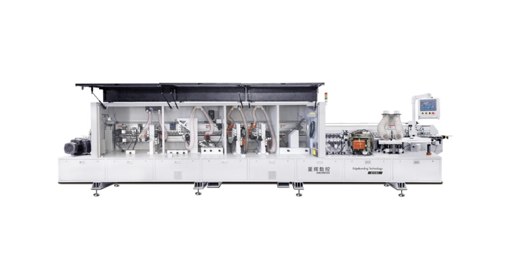 The most sophisticated of edgebanders, this model allows factory floors to keep ahead of production demand and ensure product efficiency. Specifications for this model include narrow panel 300x40mm, 18-24m/min cutting speed, pre-milling, rough trimming & fine trimming, corner rounding, radius scrapers, spray cleaning agents, hinge protection kit and buffing.